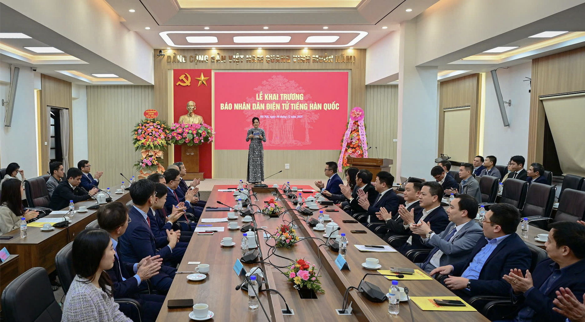 Chiều 30/12, tại Hà Nội, Báo Nhân Dân tổ chức Lễ khai trương Báo Nhân Dân điện tử tiếng Hàn Quốc tại địa chỉ https://kr.nhandan.vn/ nhằm đáp ứng nhu cầu tìm hiểu về Việt Nam của bạn bè quốc tế và cộng đồng sử dụng tiếng Hàn trên toàn thế giới, quảng bá hình ảnh đất nước, con người Việt Nam hòa bình, thân thiện, mến khách. Đây là ấn phẩm thứ 7 của Báo Nhân Dân điện tử, bên cạnh các trang tiếng Việt, tiếng Anh, tiếng Pháp, tiếng Trung, tiếng Nga và tiếng Tây Ban Nha. Dịp này, đồng chí Lê Hoài Trung, Bí thư Trung ương Đảng, Bộ trưởng Ngoại giao đã gửi lẵng hoa chúc mừng. Về phía Đại sứ quán Hàn Quốc và Cộng đồng doanh nghiệp Hàn Quốc, có Ngài Choi Young Sam, Đại sứ đặc mệnh toàn quyền Hàn Quốc tại Việt Nam; ông Na Ki Hong, Tổng Giám đốc Samsung Việt Nam.