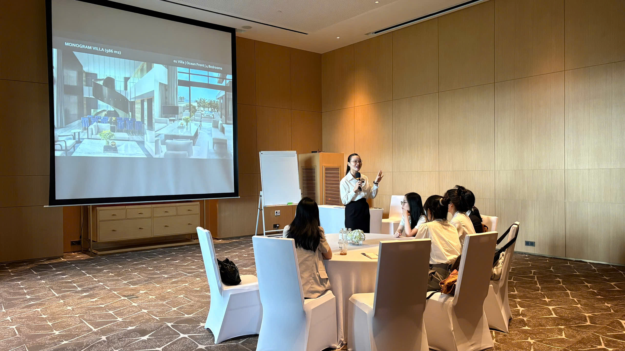 Khách sạn Shilla Monogram Đà Nẵng là khu nghỉ dưỡng cao cấp, kết hợp tinh hoa văn hóa Hàn Quốc với vẻ đẹp thiên nhiên và văn hóa Việt Nam, tọa lạc giữa Đà Nẵng và Hội An. Đây là khu nghỉ dưỡng đầu tiên của The Shilla Hotels & Resorts, trực thuộc Tập đoàn Samsung. Shilla Monogram mang phong cách lối sống hiện đại, tái hiện nét văn hóa địa phương, đồng thời thể hiện sự tinh tế và chăm sóc tỉ mỉ đặc trưng của Hàn Quốc. Mở đầu chuyến tham quan, Đại diện khách sạn đã chia sẻ về lịch sử hình thành, phong cách phục vụ chuẩn quốc tế và những giá trị thương hiệu Shilla Monogram mang lại.
